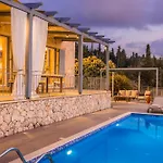 Aelia Villa med 2 sovrum erbjuder en utomhuspool och närhet till Fokis strand, som ligger ungefär 10 minuter bort med bil. Villan med 2 badrum har en parkering och en terrass med utsikt över havet.